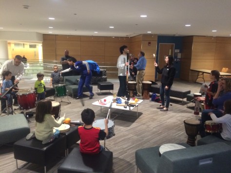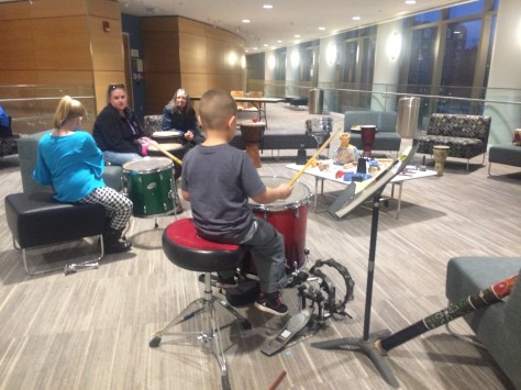 As the father of an autistic son myself, no one needs to tell me of the true magical value music adds to his being. But to see it unfold in such a large public group of 30-plus “drummers” at last night’s Light it up Blue for Autism celebration and education fair at UMass Medical Center in Worcester was truly inspirational.