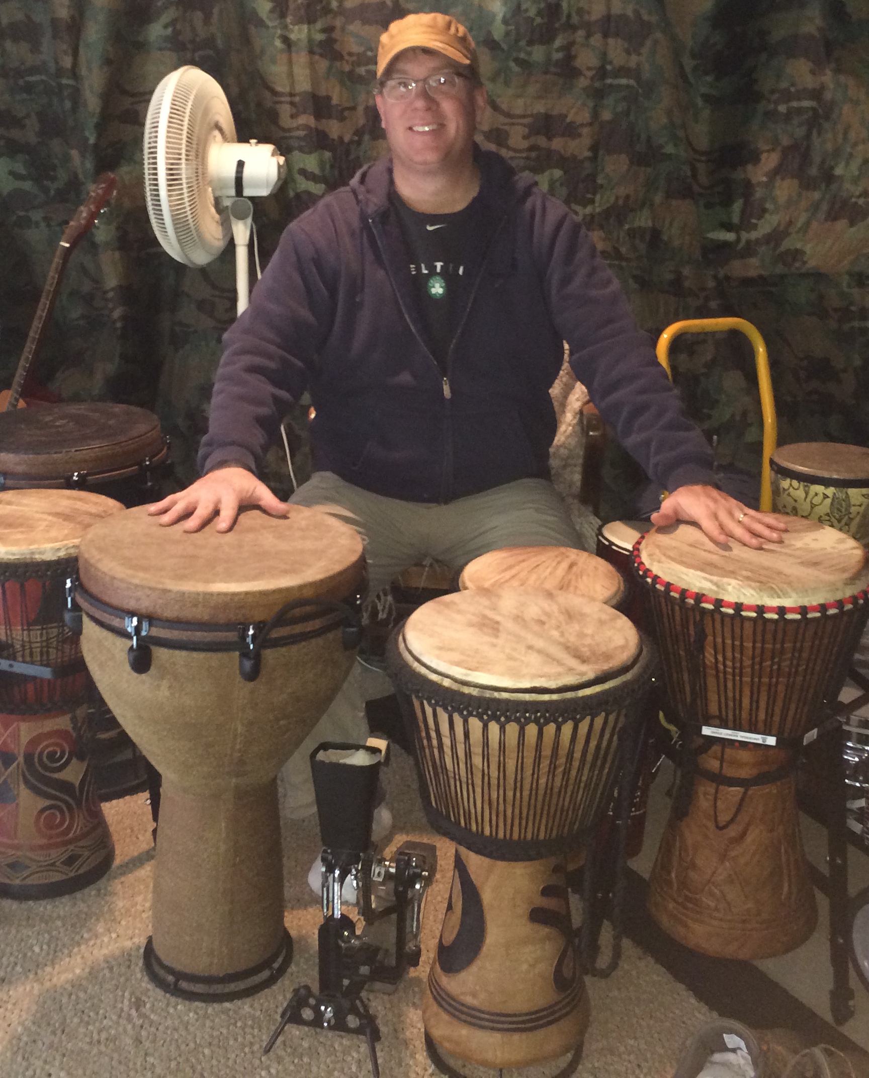 Feel free to click on the public YouTube links below to watch or download his most recent workshops to get a better idea of what he offers. The first film captures his lecture on the drum set and its history. The second video is from an actual drum circle workshop where participants composed their own group songs.